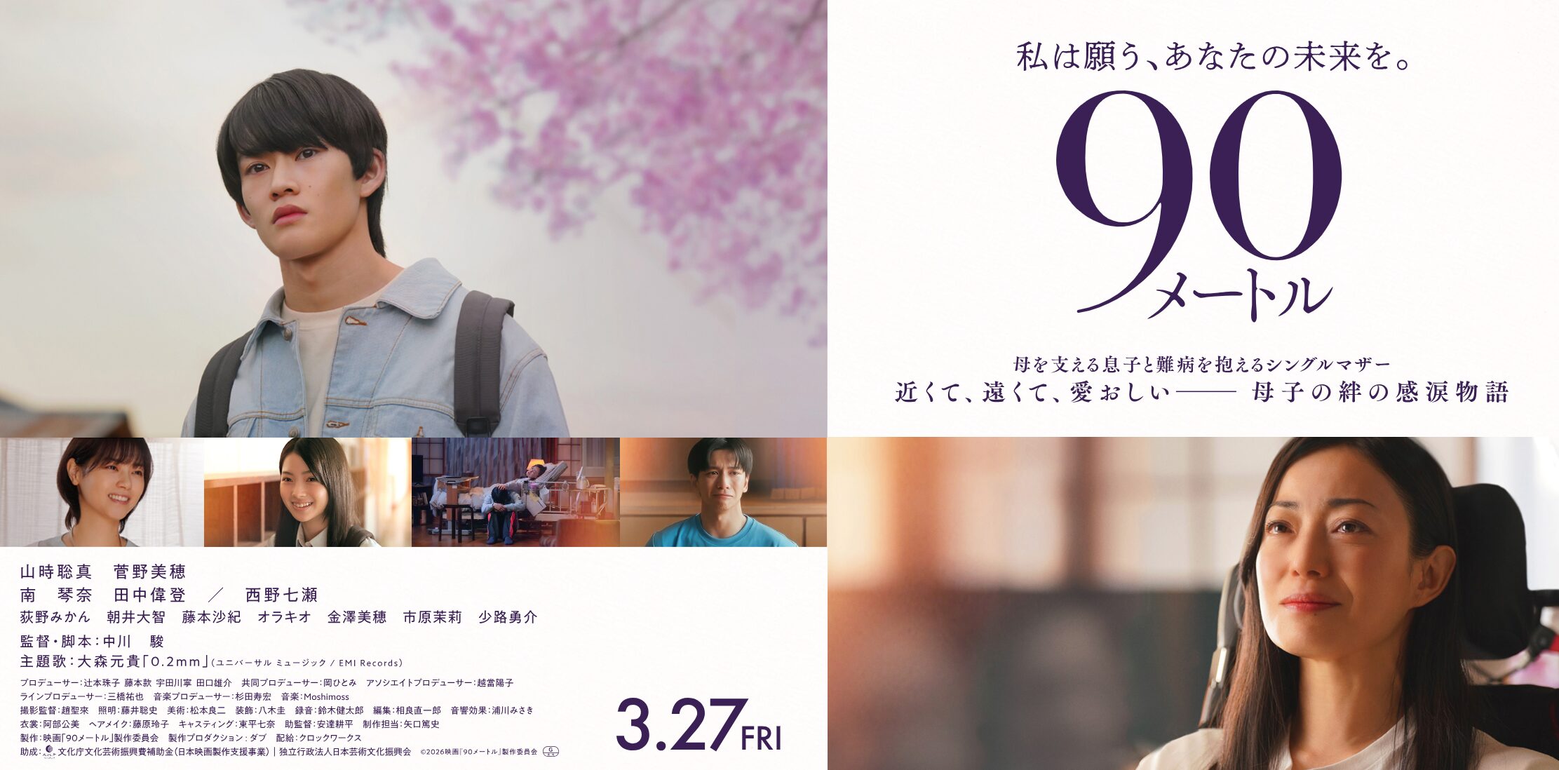 2026年3月27日公開の映画『90メートル』は、難病の母を介護する高校生の息子と、息子の“希望ある明日”を願うシングルマザーを描くヒューマンドラマ。