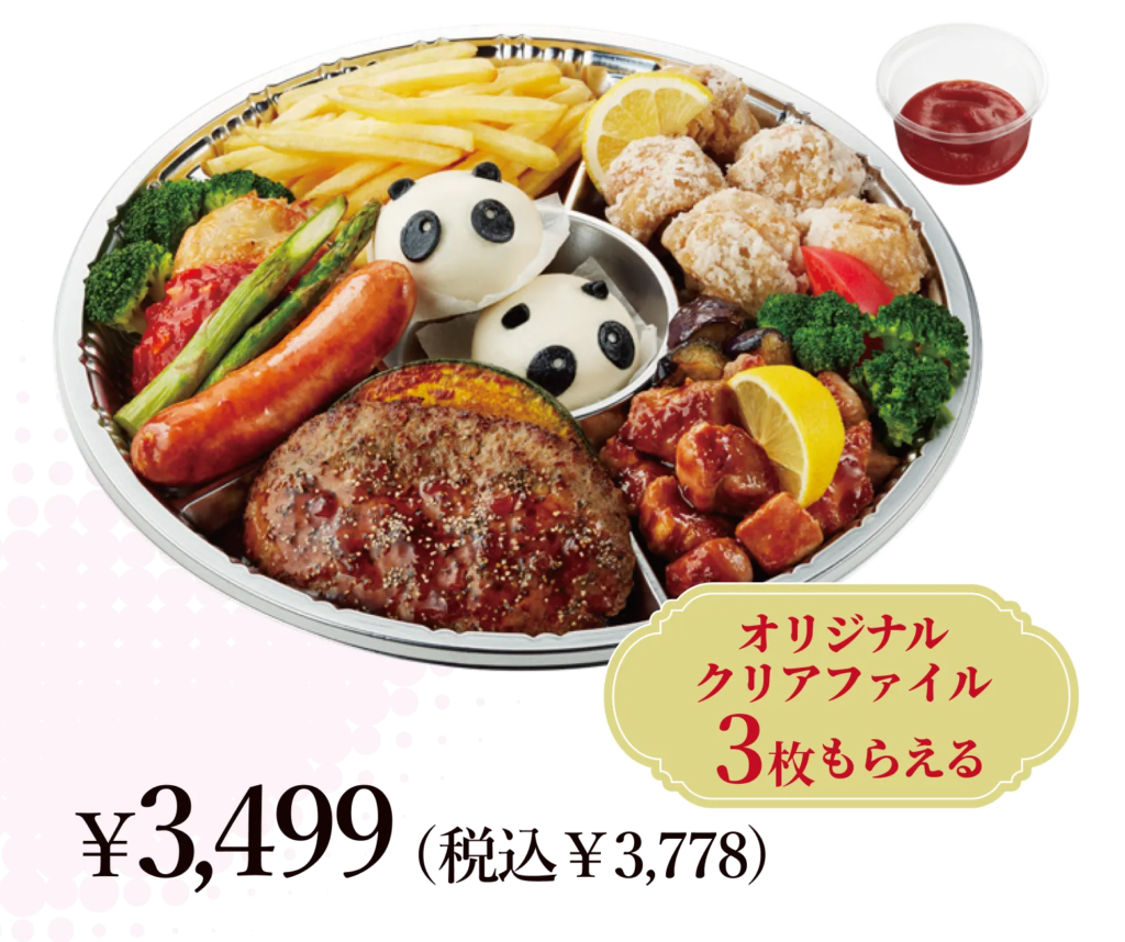 - オリジナルオードブル(税込3,778円):注文でオリジナルクリアファイル3枚プレゼント