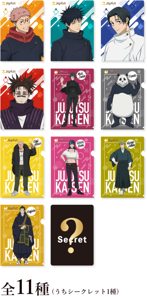 コラボメニューを1品注文するごとに、オリジナルクリアファイル(全11種・うちシークレット1種)がランダムで1枚もらえます。