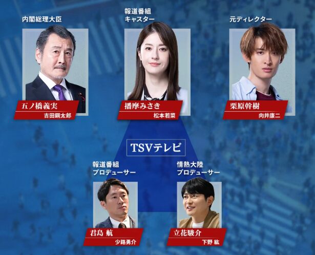 • 君島 航(少路勇介):報道番組プロデューサー。番組の責任者。
