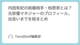 俳優 内田有紀の結婚相手・柏原崇とは?元俳優マネジャーのプロフィール、出会いまでを総まとめ 内田有紀の結婚相手・柏原崇さんのプロフィールをまとめ。元俳優で代表作は映画『Love Letter』や『白線流し』。現在は芸能マネジャーとして活動中。 2026.04.09 俳優時事ニュース