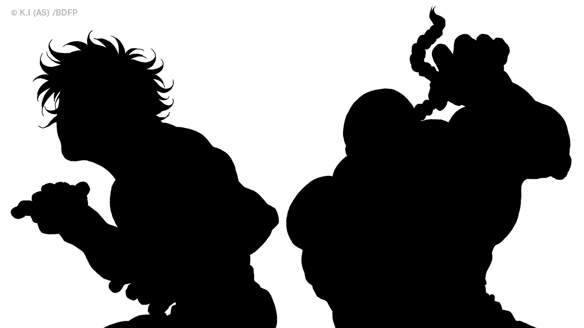 公開されたビジュアルには、ピクセルアート(ドット絵)風に描かれた範馬刃牙と烈海王のシルエットが登場しています。